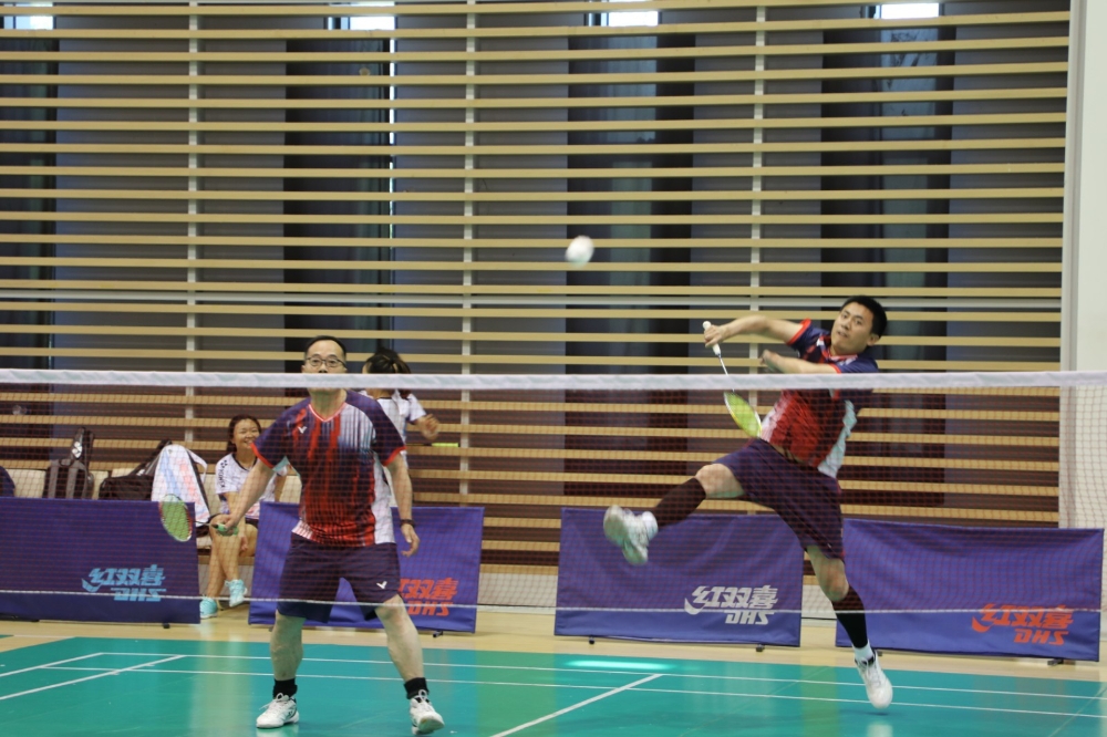 图为第三届“国能科创杯”羽毛球混合团体赛双打比赛现场
