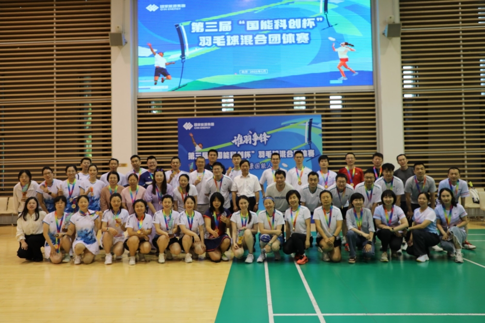 图为第三届“国能科创杯”羽毛球混合团体赛闭幕现场合影